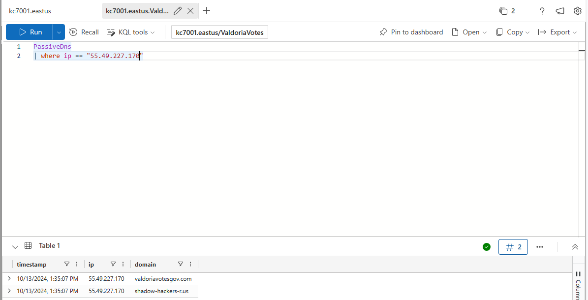 Let’s look for evidence in our data. Remember, there was a suspicious-looking Valdoria domain registered by the adversaries.