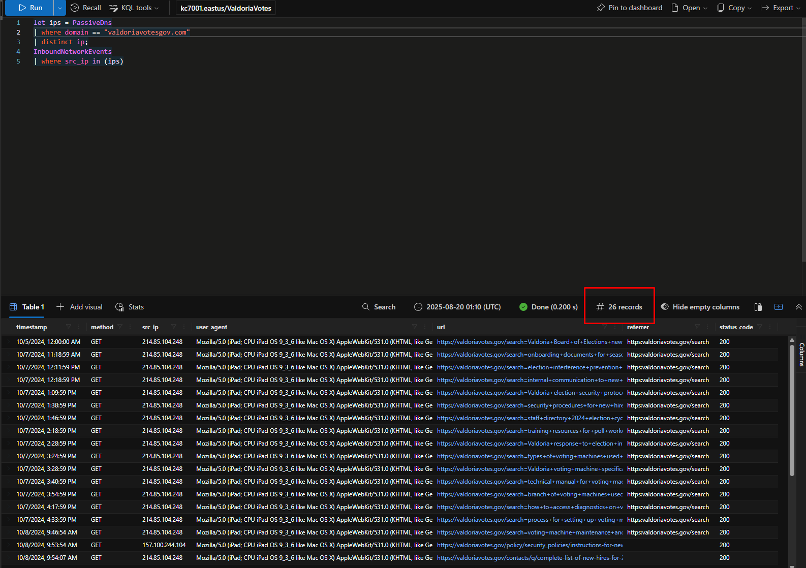 Navigate the tension-filled cybersecurity scenario of an election under threat in “Valdoria Votes.” Enhance your KQL skills as you investigate infiltration attempts aimed at undermining the voting process.